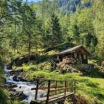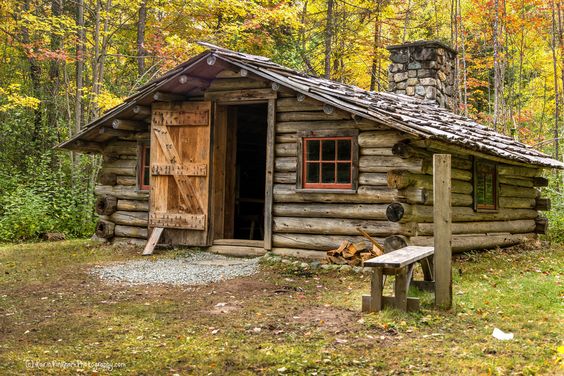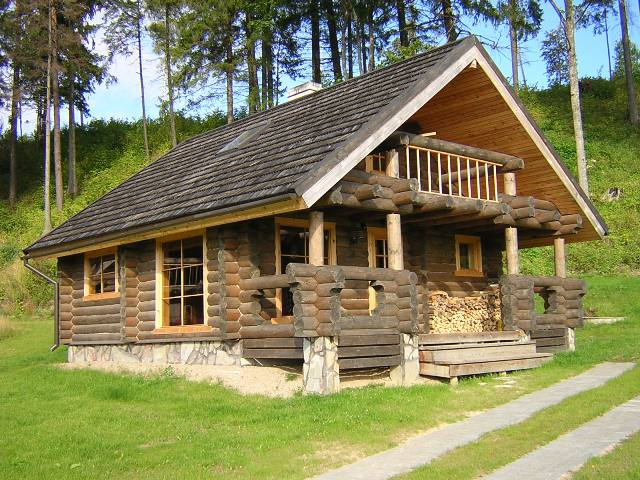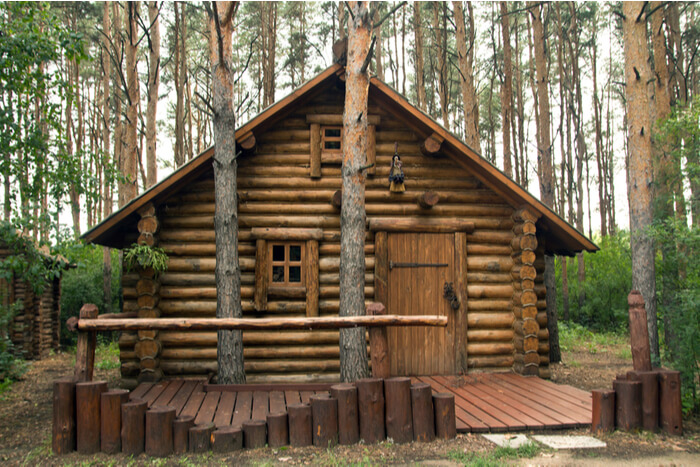 Cabaña en el bosque con madera redonda