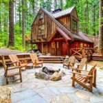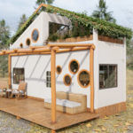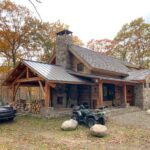 Cabaña moderna de piedra y madera redonda