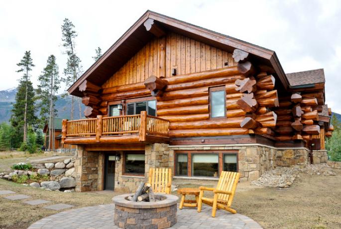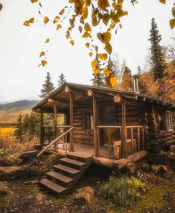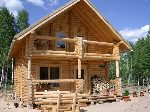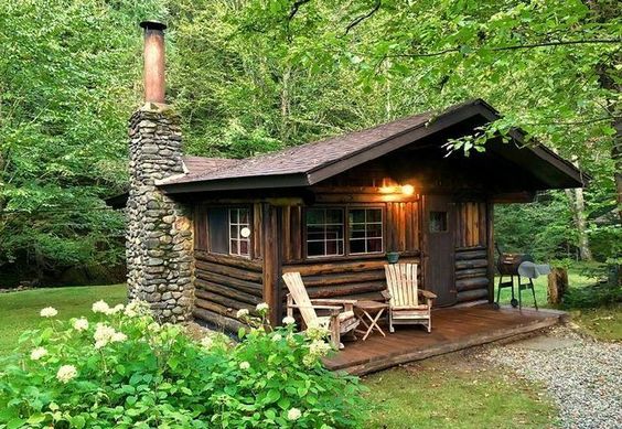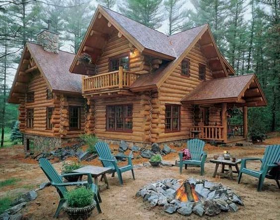 Preciosa cabaña con madera redonda
