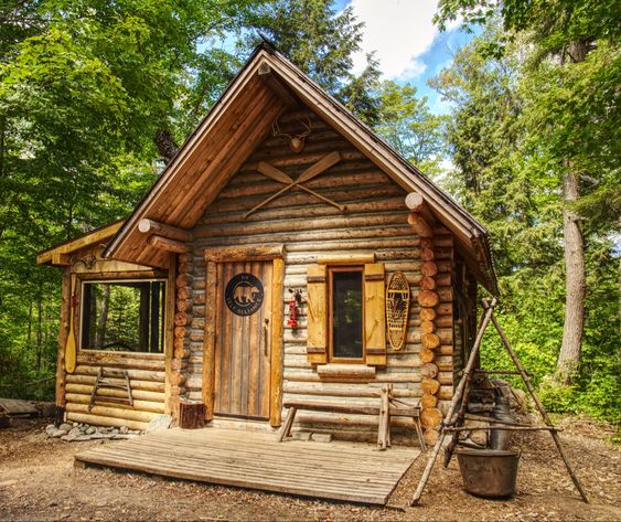 Cabaña con madera redonda y techo triangular